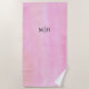 This stylish beach towel features a pink watercolor with your initials in elegant black typography.