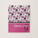 Monogram Pink Black Soccer Ball Pattern Jigsaw Puzzle