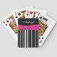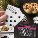 Show your unique style and personality with this monogrammed deck of Bicycle Brand playing cards in hot pink, black, and white stripes pattern with a PRINTED pink ribbon, a PRINTED button medallion and spots to add your own name, monogram, logo, initials, or other text. It would make a great house-warming gift, a wedding party gift, or a party or wedding favour.