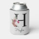 Monogram Pink Boho Girly Floral Initial H Can Cooler