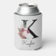 Monogram Pink Boho Girly Floral Initial K Can Cooler