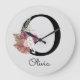 Monogram Pink Boho Girly Floral Initial O Large Clock
