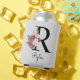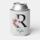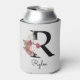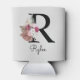 Monogram Pink Boho Girly Floral Initial R Can Cooler
