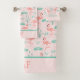 Monogram this pretty pink flamingos bath towel set with your initials or last name or any text you want. Set includes bath towel, wash cloth and hand towel. Also sold separately.