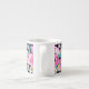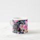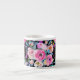 Monogrammed Pink Floral Espresso Coffee Cup. Lovely Floral Monogram Pink watercolor flowers, accented by green foliage on a black background. Fully customisable and transferable. Artist Yulia Podlinnova.