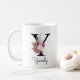 Monogram pink Boho initial mug, perfect Christmas or birthday gift for a daughter, mum, aunt or sister. Customised with monogrammed the letter Y and a name. Other letters available in my shop.