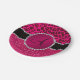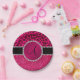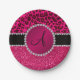 Monogram pink glitter neon hot pink leopard paper plate