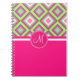Monogram Pink Green Grey Diamonds Square Pattern Notebook