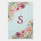 Monogram Pink Hibiscus Flowers Tropical Floral Tea Towel