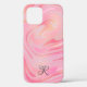 iPhone case in Light pink and dark pink with flecks of gold glitter in this lovely marble swirl pattern. Add your monogram to add that special touch.