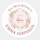 Monogram Pink Rose This Book Belongs to Bookplate Classic Round Sticker