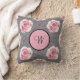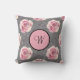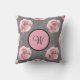 A personalised monogrammed pink roses on a grey background throw pillow