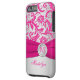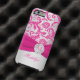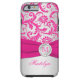 Monogrammed modern hot pink and silvery grey floral damask pattern Vibe™ iPhone 6 case with PRINTED ribbon and PRINTED faux engraved look crystal brooch. it to add your name, initial, or other text. If you need assistance, email niteowlstudio@gmail.com.