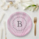 Monogram Pink Sunray Shabby Texture Paper Plate