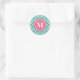 Monogram Pink Teal Blue Quatrefoil Pattern Classic Round Sticker
