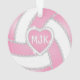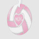 Monogram Pink & White Diamond Volleyball Ornament