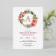 Monogram Pink Wreath Botanical Christmas Party Foil Holiday Card