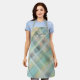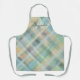Monogram plaid pastel green grey cyan yellow apron