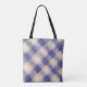 Monogram plaid tartan navy blue cream calligraphy tote bag