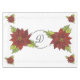 This pretty holiday tablecloth features a white background that you can change to any colour you want easily before ordering! Lovely at the table all season long, the centre has two beautiful red poinsettias and a white banner frame that you can easily customise with your monogram initial. There is white trim on all four edges with a small poinsettia on each corner.