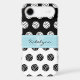 Trendy monogram polka dot volleyballs iPhone 5 case features black and white volleyballs and a pastel turquoise accent border for your name, initial or other text. Show your personality with this trendy and unique iPhone 5 case. Makes a great gift for all occasions. Click the "Customise it!" button to change the text size, text colour, font style and more! Cute & trendy designs and unique gifts available at Striped Hope !
