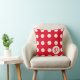 Monogram Polka Dots in Soft White on Bright Red Cushion