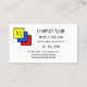 Business card featuring a Mondrian inspired design in primary colours. This design is build from template shapes with a lot of choices for you to make it your own style. You can customise the squares by scaling, rotating and much more. And you can choose your own background colour!