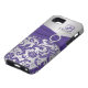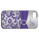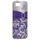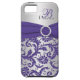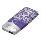 Monogrammed modern purple and silver grey floral damask Case-Mate Vibe™ iPhone 5 Case with PRINTED ribbon and PRINTED jewel brooch. Customise it to add your name, initial, or other text. If you need assistance, email niteowlstudio@gmail.com.