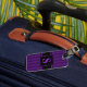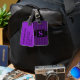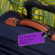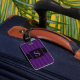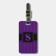 Luggage tag with a purple and black pinstripe pattern and your monogram. Pinstripes are very thin parallel stripes. Personalise with your monogram initial and information using the easy templates. Font colour, font style, and font size are customisable.