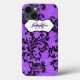 Monogrammed modern purple and black leafy ornate floral scrolls and swirls pattern Case-Mate iPad 2, 3 or 4 case customised with your name, initials, monogram, logo, or other text.