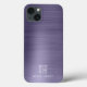 Monogram Purple Brushed Metal iPhone 13 Case. Fully personalise this elegant purple faux brushed metal iPhone 13 case with you monogram and name.