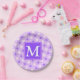 Monogram purple circles pattern paper plate