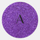 Monogram purple glitter classic round sticker