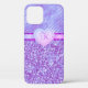 Monogram Purple Glitter Heart 2 Tone iPhone 12 Case with your initial.Two tone design with a bling Heart design. Great gift for someone hard to buy for.