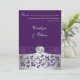 Monogram Purple, Silver Floral Wedding Invitation