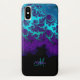 Monogram Purple Turquoise Fractal Abstract iPhone X Case. A unique and stylish protective cover for your favourite new phone. Fill in your name and initial at the prompt to personalise and customise any way you like.
