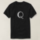 This is a men's black t-shirt with the letter Q on the front. The t-shirt is a short sleeve men's black t-shirt. You can select other colours of t-shirts. You can change the monogram letter by clicking the Personalise button.