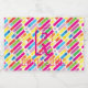 Monogram Rainbow Diagonal Lines Pattern Pop Art Trendy Design For All Occassion, Holiday, Birthday Party, Anniversary - gifts and presents, with Monogram text template. Summer Holiday. Red, Blue, Pink, Yellow, Violet, Magenta, Green - Abstract colours.