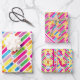 Monogram Rainbow Diagonal Lines Pattern Pop Art Wrapping Paper Sheet