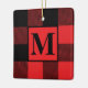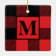 Monogram Red and Black Buffalo Plaid Christmas Ceramic Ornament