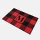 Monogram Red and Black Buffalo Plaid Christmas Doormat