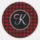 Monogram Red and Black Buffalo Plaid Classic Round Sticker