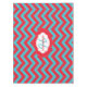 Red and blue chevron stripe Christmas holiday tablecloth with a centre framed banner of white and red with red text area to add your surname, blue text area to add your monogram initial!