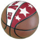 This is a full size basketball with two panels designed with a monogram name (large first letter) and uniform number, in popular college colours. This one is shown in Red and White. The second panel has team colours with three stars. All text, art, and colours can be removed, or changed as desired. One panel can be left white for autographs, etc.