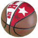 This is a full size basketball with two panels designed with a monogram name (large first letter) and uniform number, in popular college colours. This one is shown in Red, Dark Red, and White. The second panel has team colours with three stars. All text, art, and colours can be removed, or changed as desired. One panel can be left white for autographs, etc.