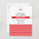 Monogram Red and White Chevron Pattern Wedding Announcement Postcard
