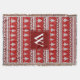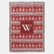 Red and white Nordic fair isle inspired pattern on a cosy comfy throw blanket with a personalised white chunky monogram letter on a cranberry red decorative square in the centre of the blanket.