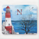 Monogram Red & Blue Lighthouse Watercolor Art Mouse Mat