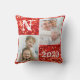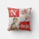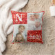 Monogram Red Glitter Photo Christmas Holiday Cushion