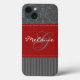 Stylish monogrammed modern grey and red damask pattern with stripes Case-Mate Barely There™ iPad Air case can be customised with your logo, name, initials, or other text. If you need assistance, email niteowlstudio@gmail.com.
